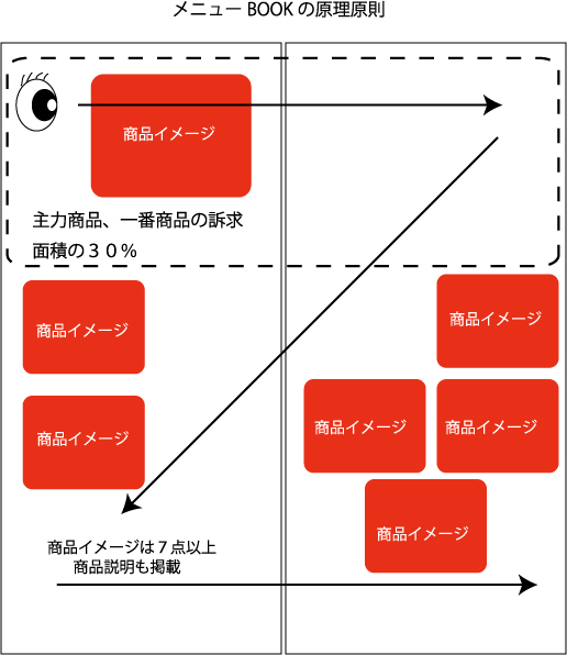 特に1枚もののメニューBOOKの場合には左上部が1等地となるので、