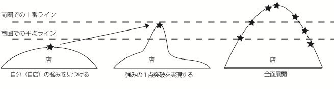 1点突破とは、一部の要素でも良いので自店商圏内において自店舗の力相応な部分で、